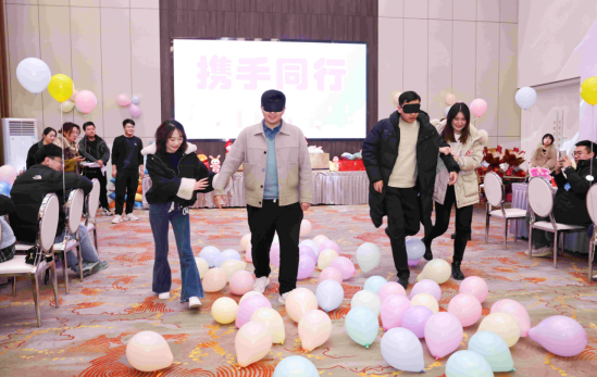 参与此次活动的20名单身男青年来自工程处、工程建设公司、临涣矿等单位近年来新入职高校毕业生,18名单身女青年来自淮北市教育、金融、医疗系统单位。活动设置了“穿越呼啦圈”“抢纸杯”“携手同行”“踩气球”“报纸拔河”等年轻人喜闻乐见的互动小游戏,以小组为单位增添竞技性,让每个人的参与热情持续高涨。在现场主持人的引导下,游戏“热身”产生了很好的效果,男女青年从陌生到熟络,迅速打成一片,纷纷敞开心扉,大胆展示自己、表达想法,整个活动氛围轻松愉悦,充满了欢声笑语。