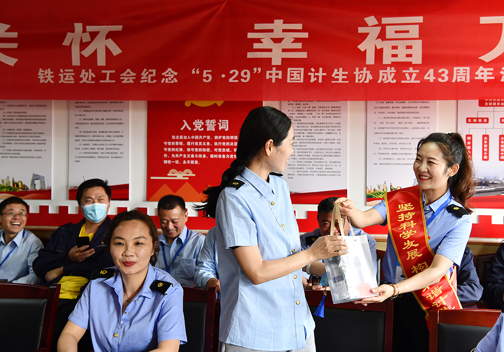 日前,铁运处开展以“倡新时代婚育文化 助家庭和谐幸福”为主题的宣传服务活动。通过发放宣传单、有奖知识抢答等形式,提高职工对最新婚育政策法规和健康知识的知晓率。在此基础上,该处以关爱计生困难家庭为重点,通过对单亲困难女职工和困难女职工实施精准帮扶,让计生困难家庭享受到更多的企业温暖。(撰稿:张艳 审核:尹良功)
