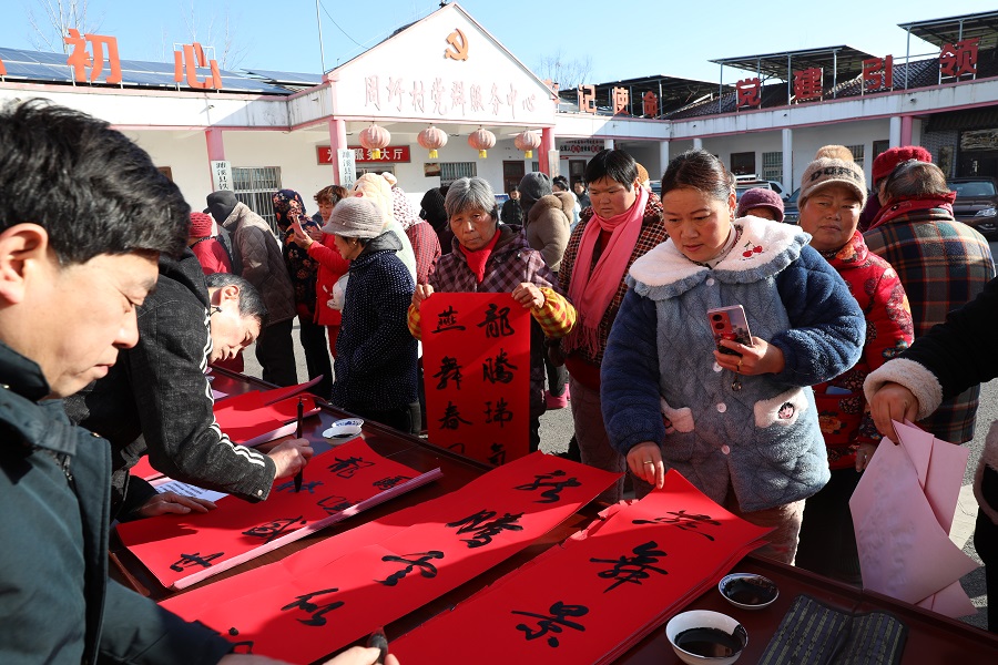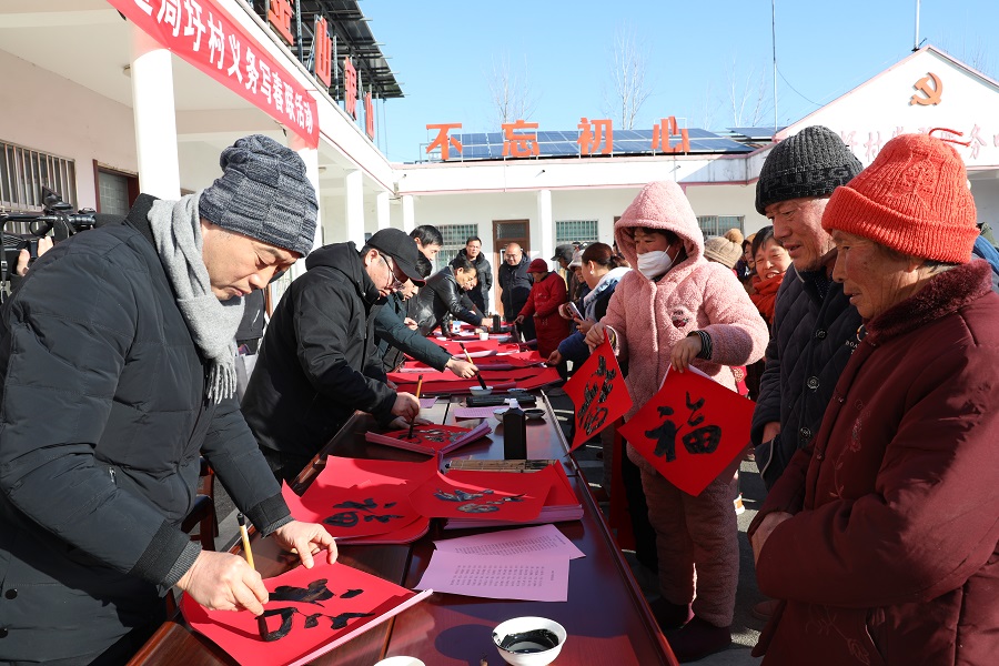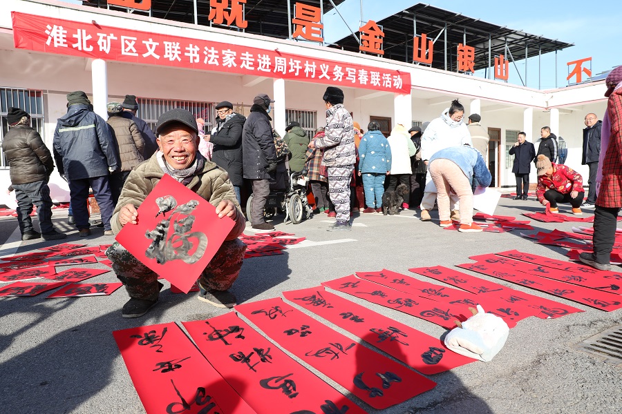 1月23日,伟德betvlctor1946源于英国集团工会组织矿区书法家深入定点帮扶乡村——濉溪县铁佛镇周圩村,开启新年义务书赠春联系列活动,现场挥毫泼墨“迎新春、话小康、助振兴”,为村民送上新春祝福和美好祝愿,为建设宜居宜业和美乡村,加快乡村振兴汇聚精神力量。