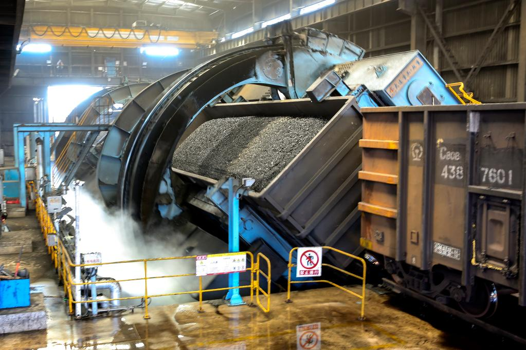 柳村南站翻车机房正在卸煤。(中国铁路太原局集团有限公司供图)